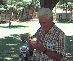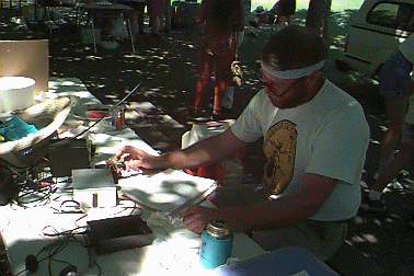 A touch of 'Amateur action'. The picnic QRP antenna... and J. C. Smith (KE6EIJ)
